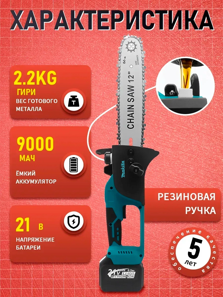 Беспроводная электрическая пила сэкономит Ваши время и силы на садовых работах. 12-дюймовая цепь справляется с деревьями большого диаметра, а система автоматической смазки продлевает срок службы инструмента и обеспечивает безопасность!